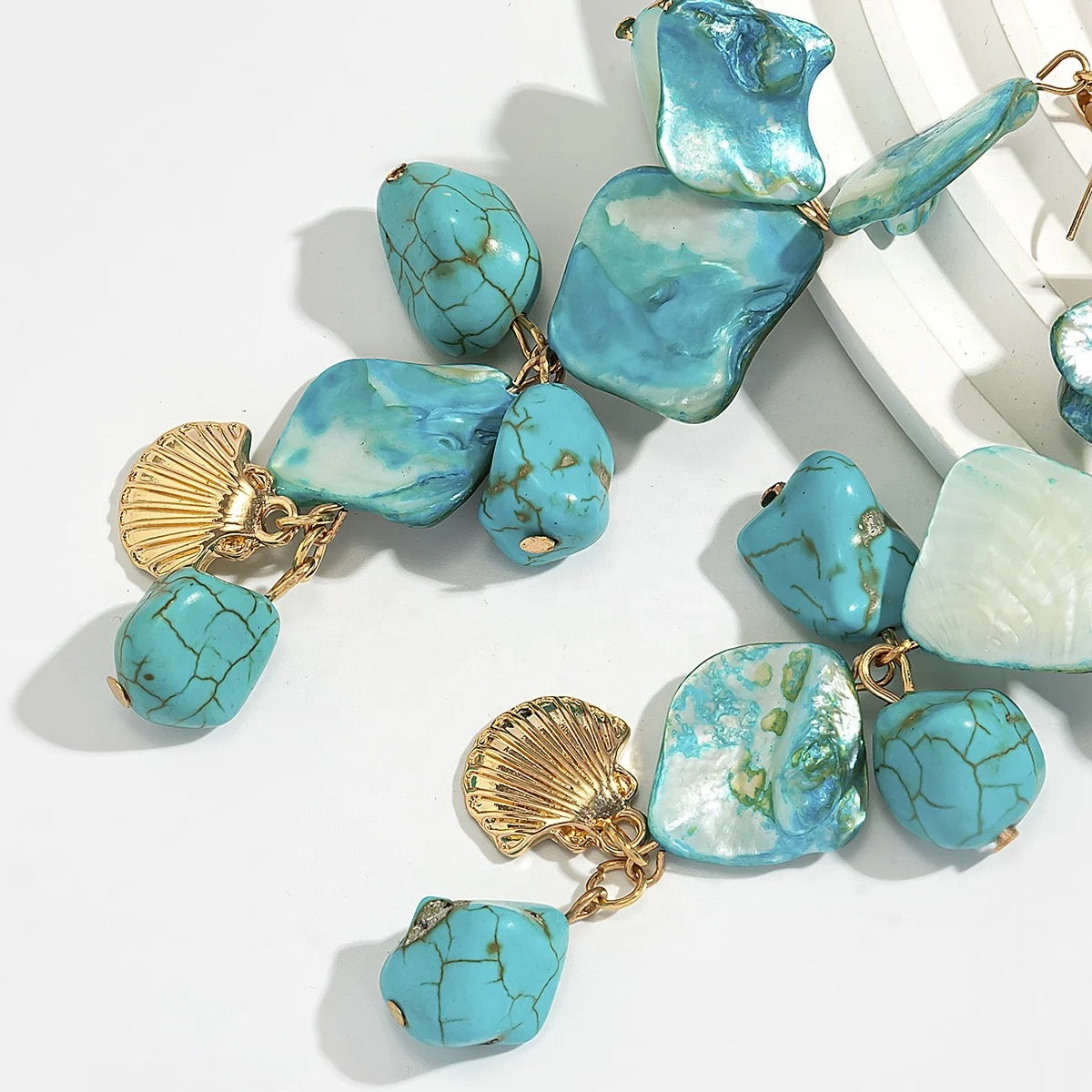 The long dangling vibrant blue stones adds an eye-catching touch and a pop of colour to any outfit.