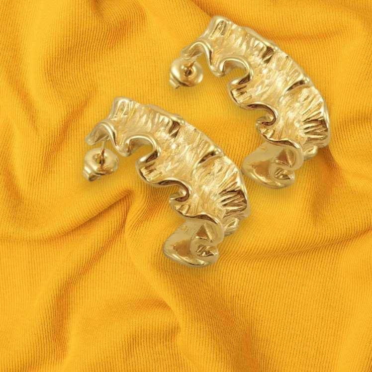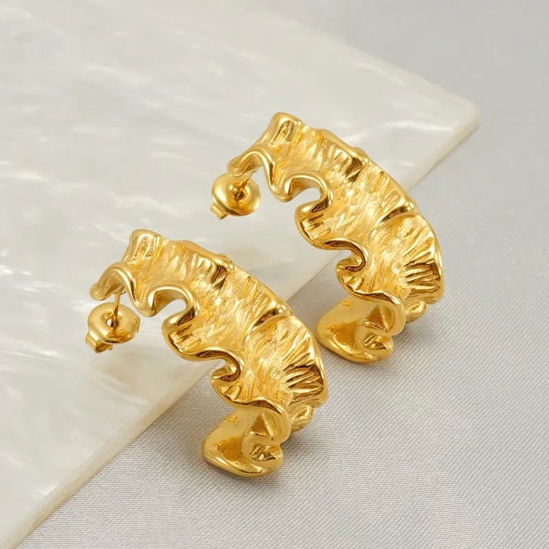 Crafted with a delicate frill detail and made of 18k gold plated stainless steel, these small hoop earrings are waterproof, hypoallergenic and tarnish resistant, making them perfect for daily wear and special occasions.